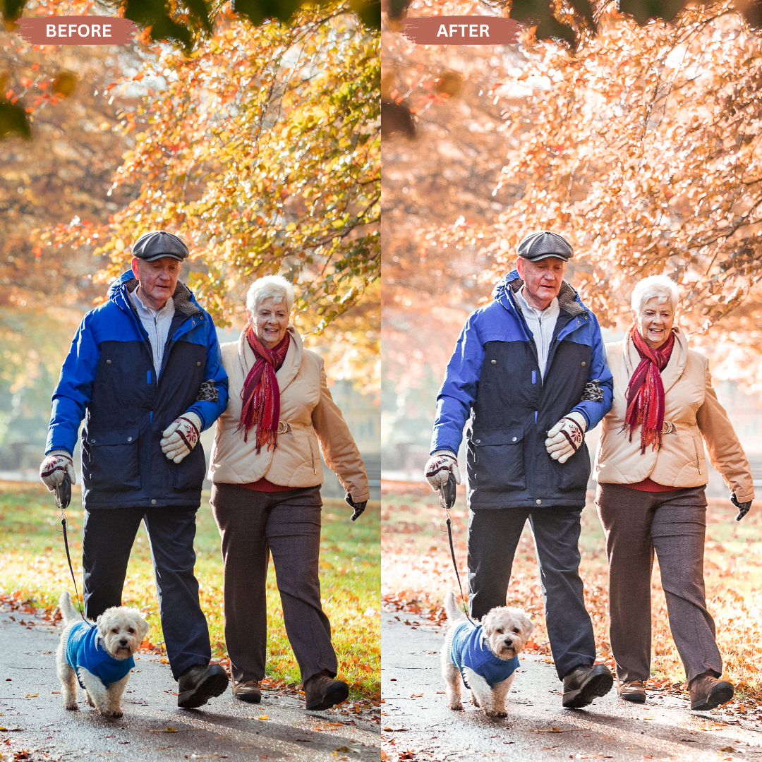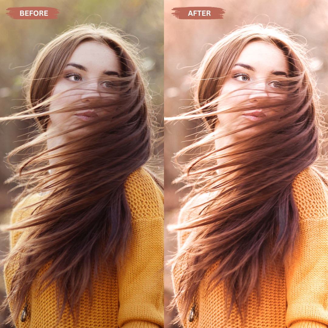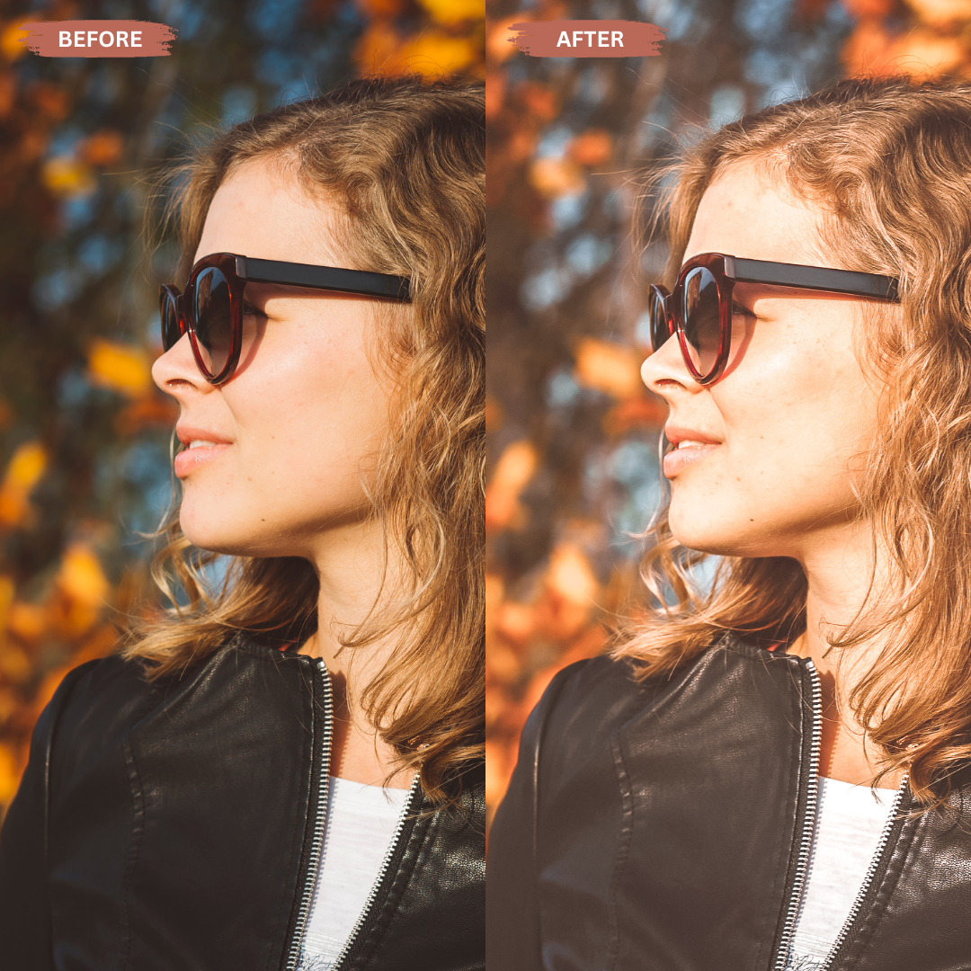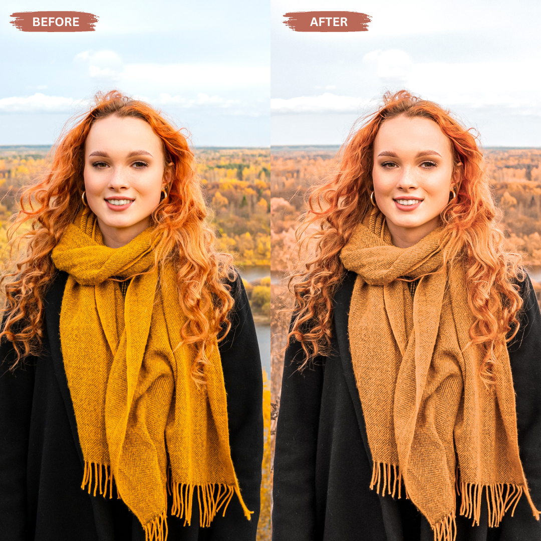 These presets enhance natural light, deepen warm shades, and add a cinematic glow to your photos. Whether you’re shooting seasonal outfits, outdoor walks, or everyday lifestyle moments, your images will instantly feel vibrant, cozy, and social-media ready.