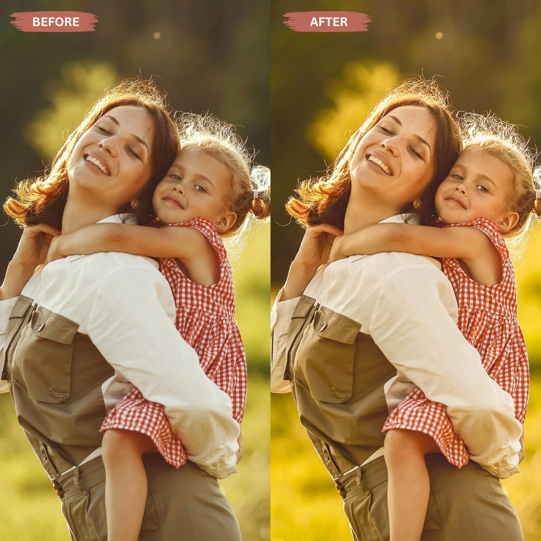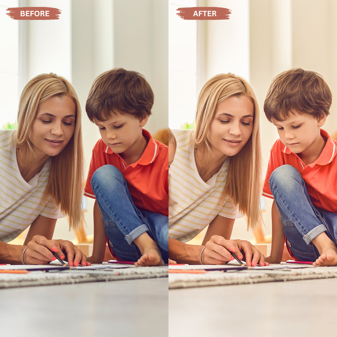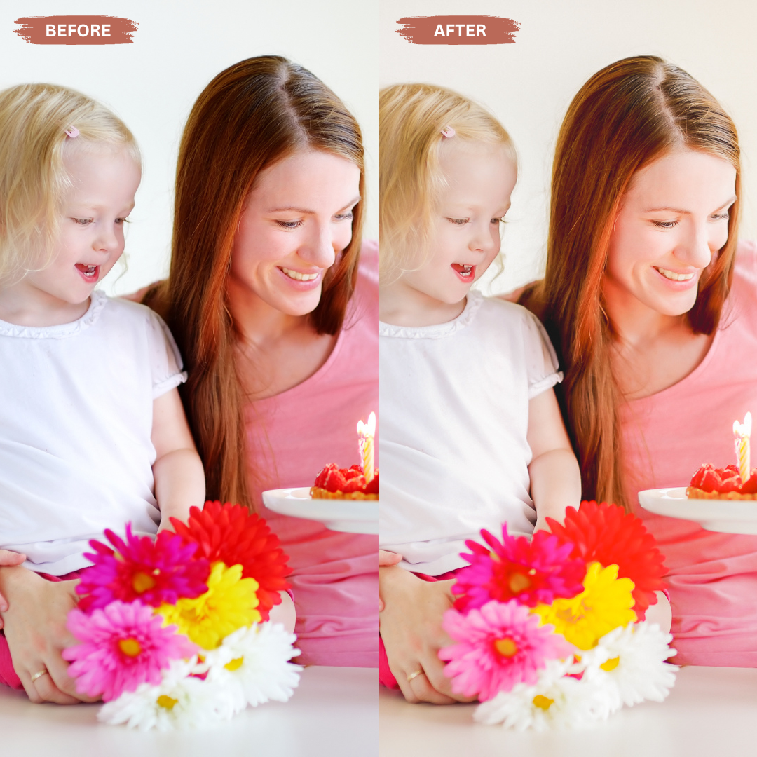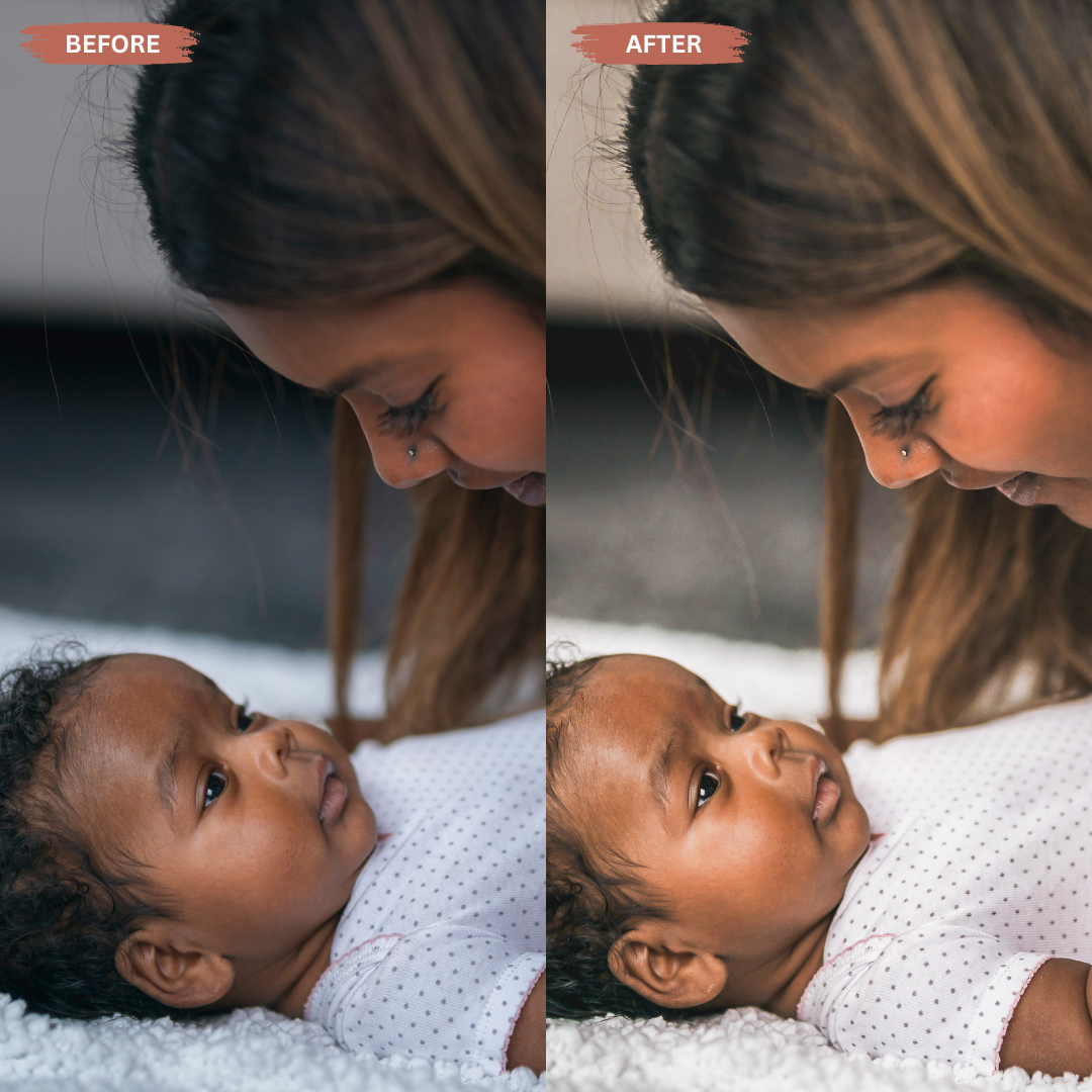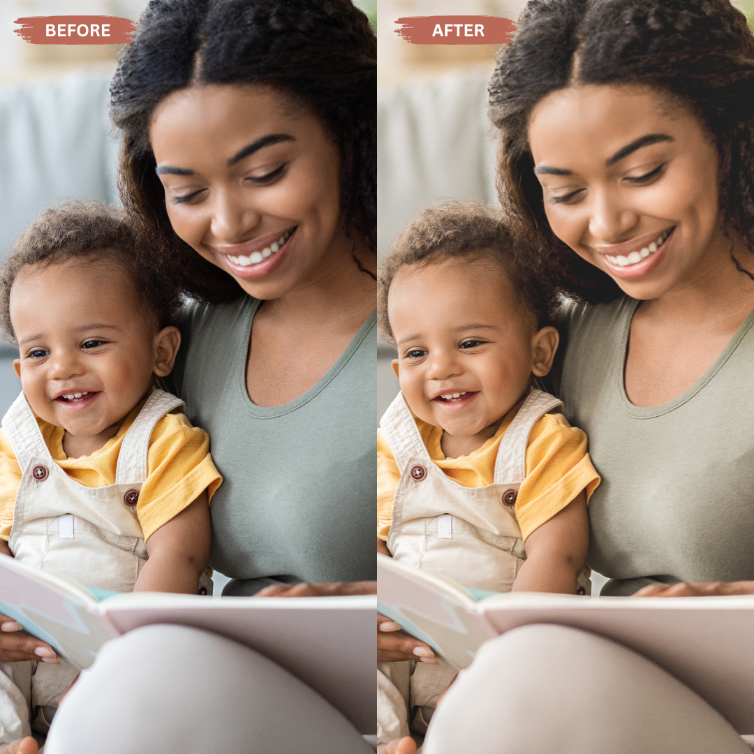 These presets enhance natural light, soften skin tones, and add a cozy golden warmth to every photo. Whether you’re capturing playtime, special milestones, or everyday family moments, your images will instantly feel professional, emotional, and ready to share.