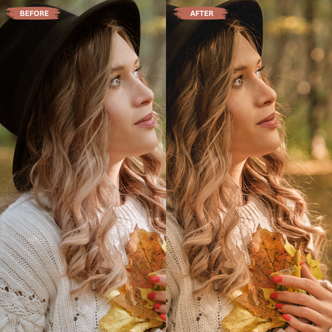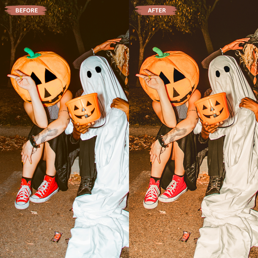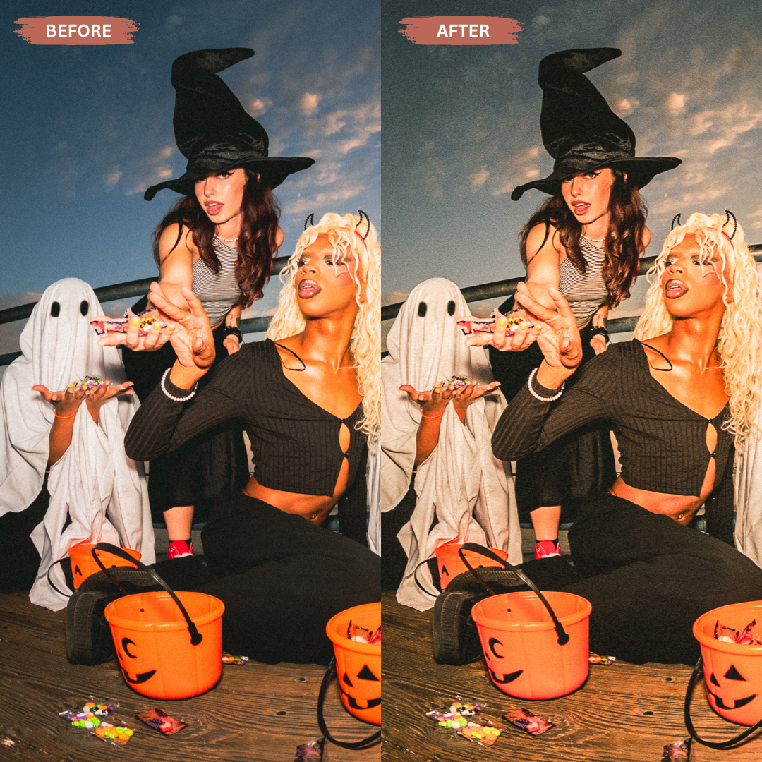 These presets enhance oranges, deepen shadows, and create a cinematic seasonal mood that’s ideal for Halloween celebrations and fall photoshoots. Whether you’re capturing costumes, pumpkin carving, or cozy autumn days, your photos will instantly stand out with a festive fall aesthetic.
