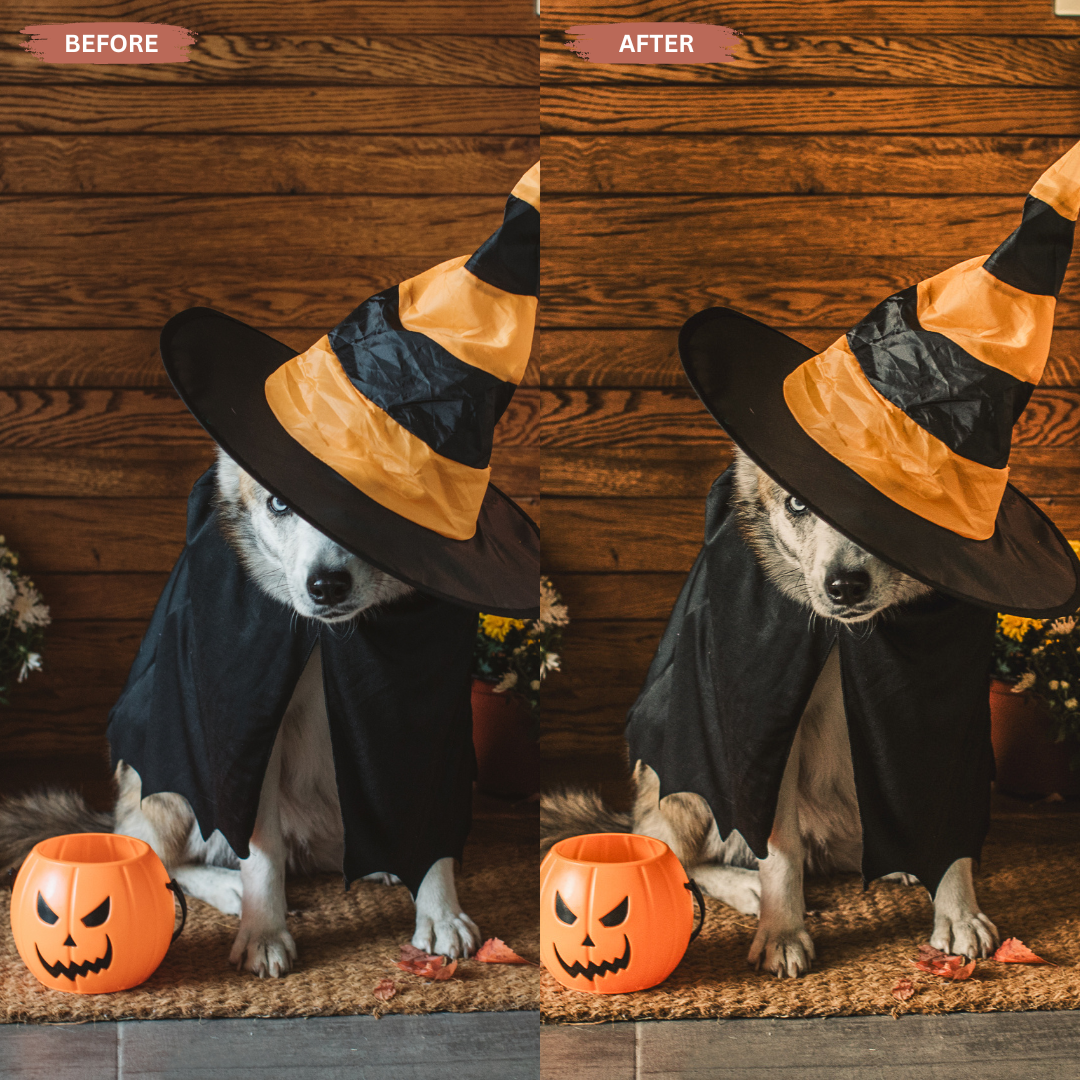 Add a spooky, festive glow to your Halloween photos in just one tap! The Pumpkin Preset Collection is designed to bring warm orange tones, cozy autumn vibes, and a magical seasonal touch—perfect for Halloween portraits, fall events, and creative content.