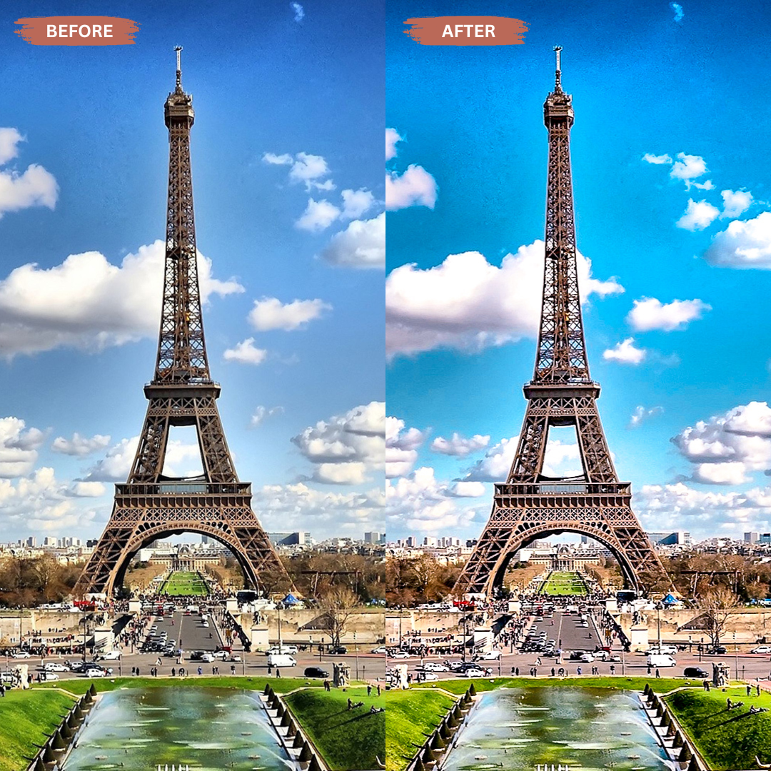 These presets enhance skies, water, greenery, and cityscapes to create stunning, professional-quality edits. Whether you’re exploring iconic landmarks, enjoying tropical getaways, or sharing travel vlogs, your photos will instantly stand out with rich, bold colors and striking details.